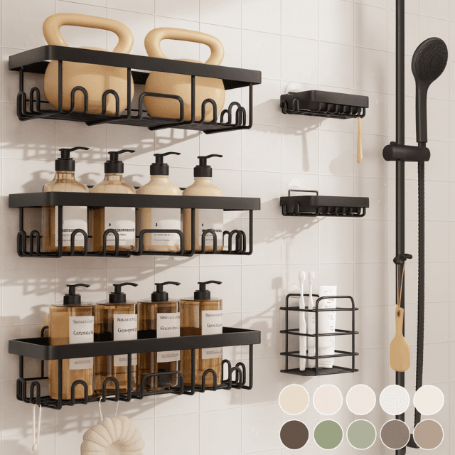 Declutter your shower space with this all-in-one 6-piece caddy set, featuring small, medium, and large baskets, plus a soap dish and toothbrush holder. Perfect for organizing shampoos, razors, body wash, and more — everything stays within easy reach.
